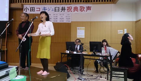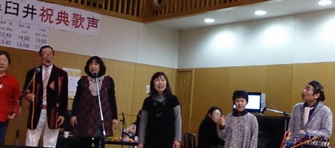 おっくん古希とう臼井さん喜寿の祝典うたごえが日野交流センターで開かれました。